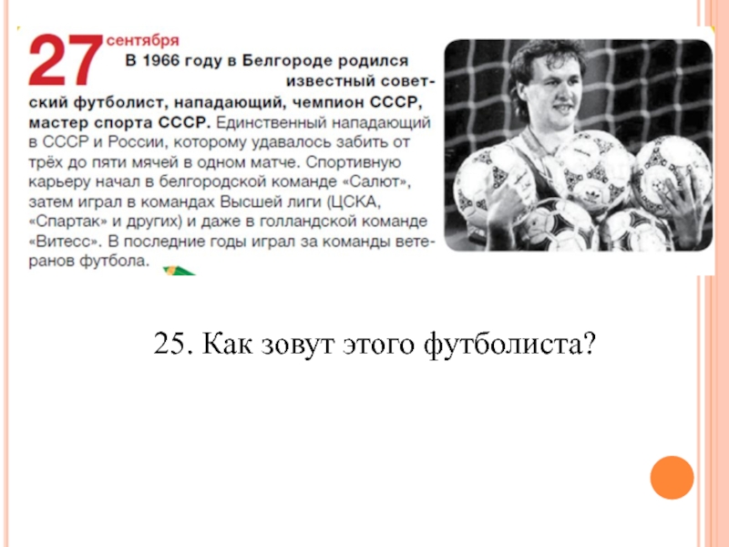 Слайд 4825. Как зовут этого футболиста?