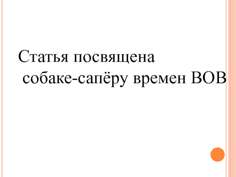 Статья посвящена собаке-сапёру времен ВОВ