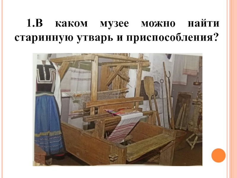 Слайд 2 1.В каком музее можно найти старинную утварь и приспособления?