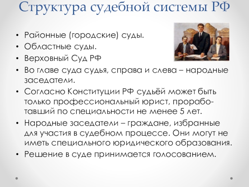 судья, справа и слева – народные заседатели.