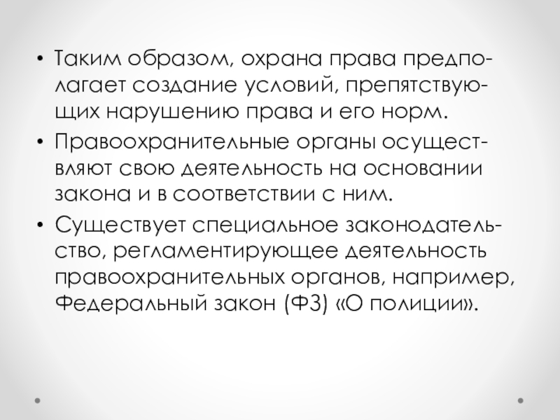Слайд 6Таким образом, охрана права предпо-лагает создание условий, препятствую-щих нарушению права и