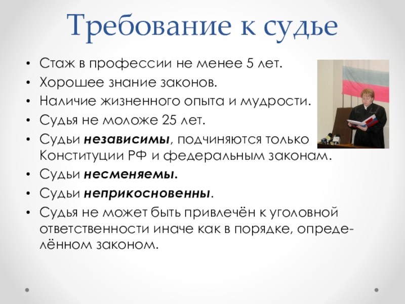 Слайд 10Требование к судье