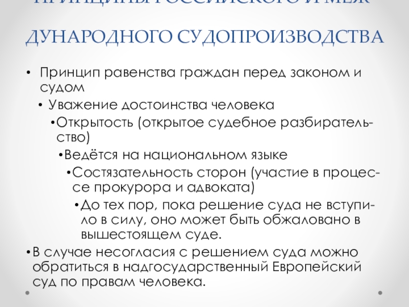 Слайд 15Принципы российского и меж-дународного судопроизводства