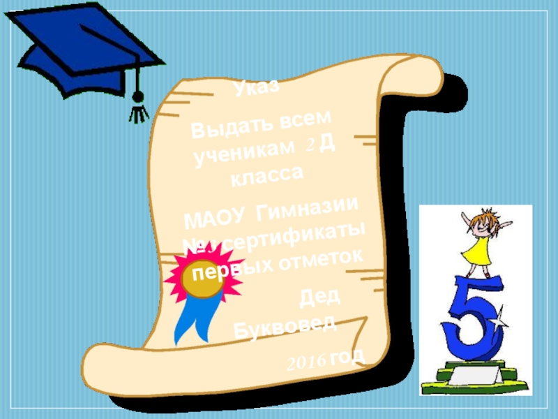 УказВыдать всем ученикам 2 Д класса МАОУ Гимназии №3 сертификаты первых отметок