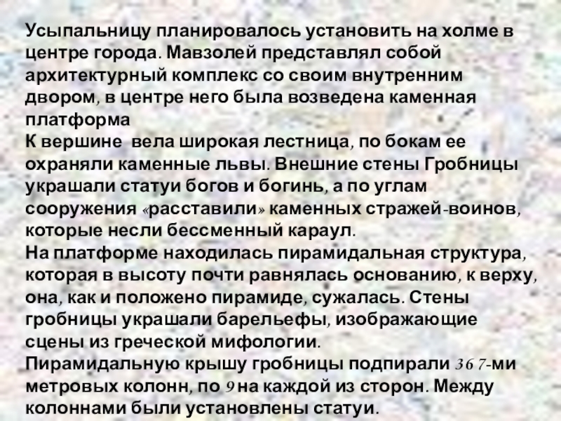 Слайд 12Усыпальницу планировалось установить на холме в центре города. Мавзолей представлял собой