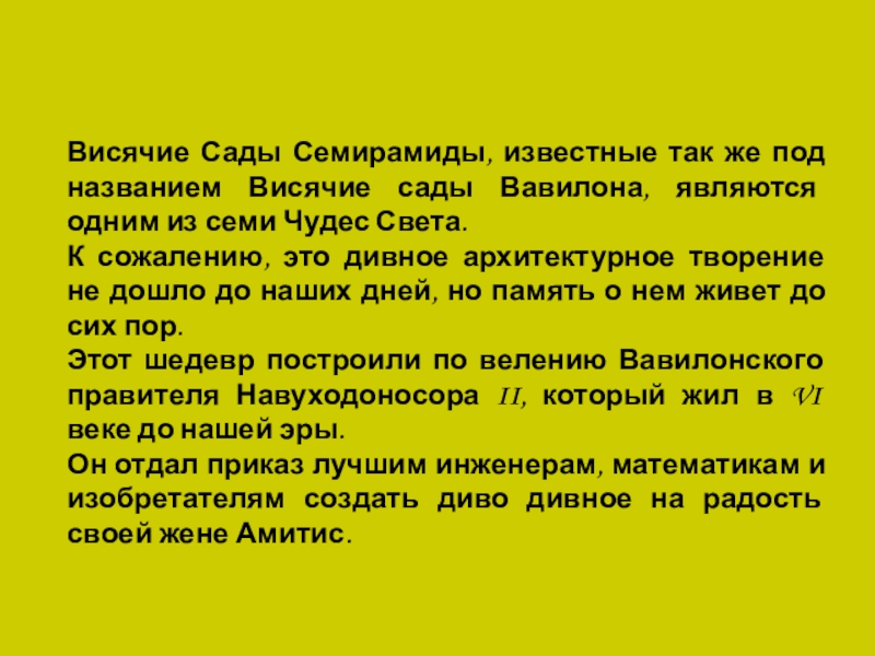 Он отдал приказ лучшим инженерам, математикам и изобретателям создать диво дивное на радость своей жене Амитис.
