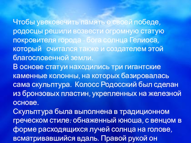 Чтобы увековечить память о своей победе, родосцы решили возвести огромную статую