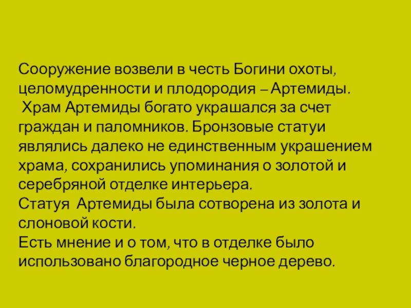 Статуя Артемиды была сотворена из золота и слоновой кости.