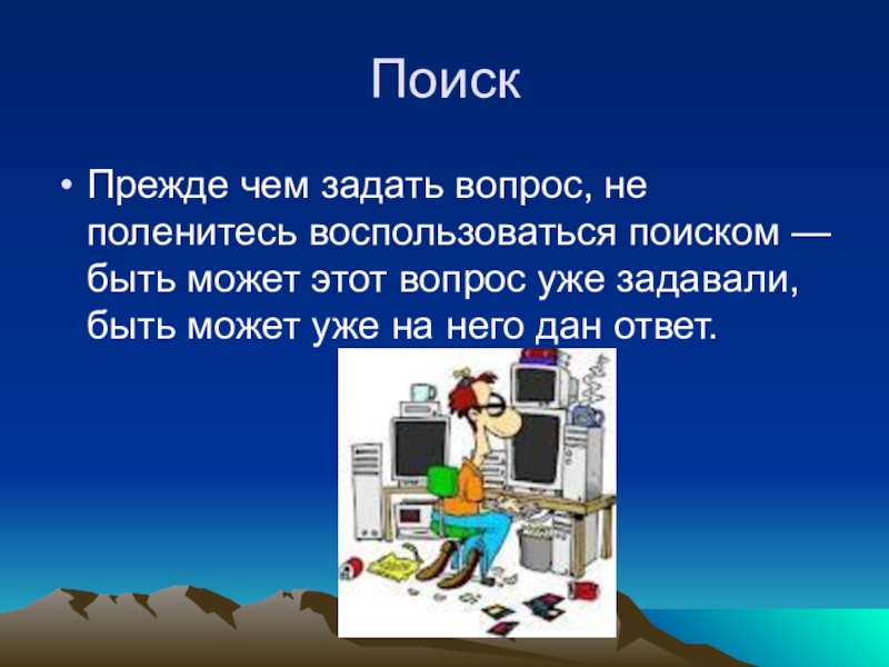 Поиск Прежде чем задать вопрос, не поленитесь воспользоваться поиском — быть может этот вопрос уже задавали, быть может
