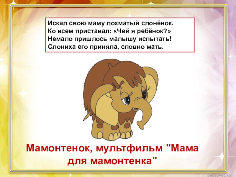 Мамонтенок, мультфильм "Мама для мамонтенка"