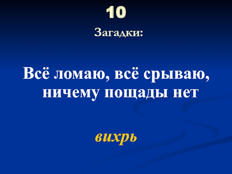 10  Загадки: Всё ломаю, всё срываю, ничему пощады нетвихрь