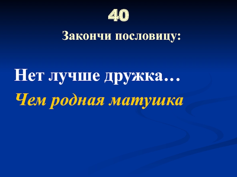 40  Закончи пословицу:Нет лучше дружка…Чем родная матушка