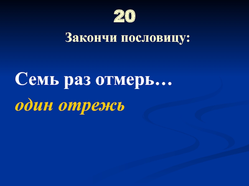 20  Закончи пословицу:Семь раз отмерь…один отрежь
