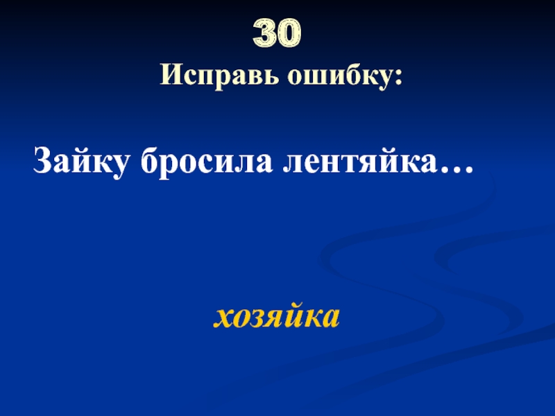 30  Исправь ошибку:Зайку бросила лентяйка…хозяйка