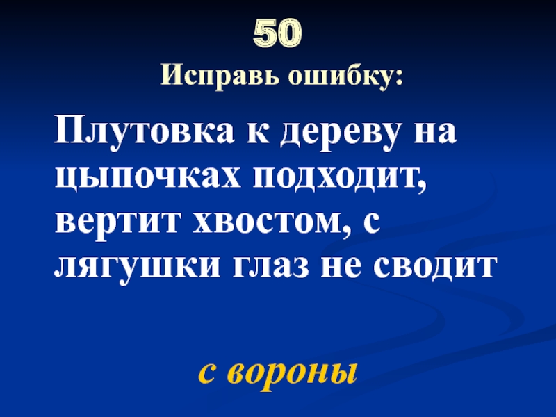 50  Исправь ошибку: Плутовка к дереву на цыпочках подходит, вертит хвостом, с лягушки глаз не сводитс