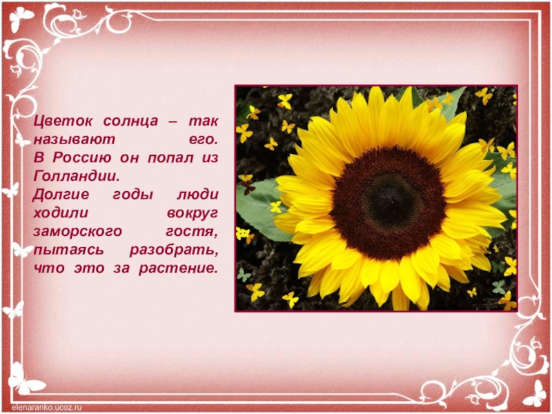 Слайд 4Цветок солнца – так называют его. В Россию он попал из