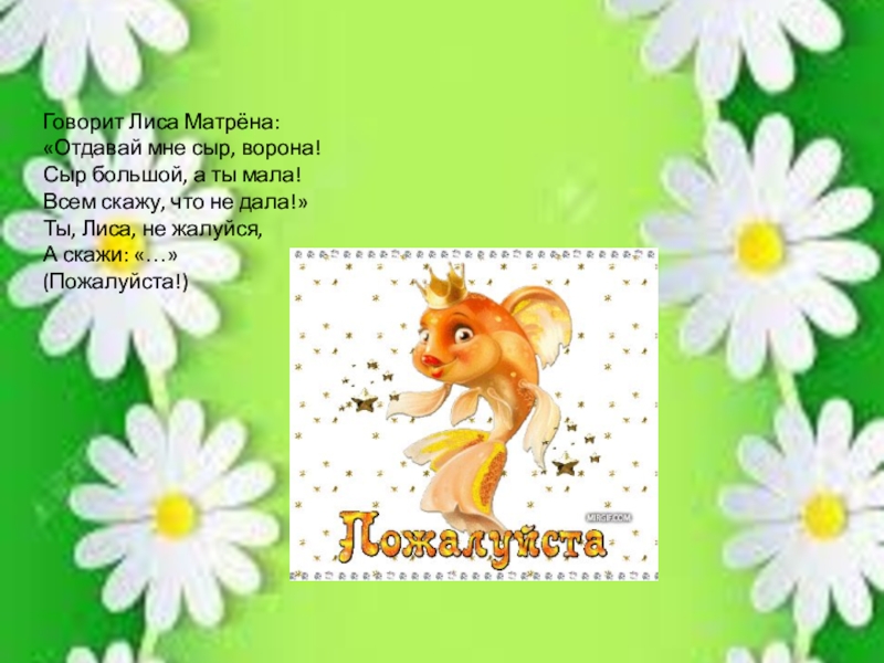 что не дала!» Ты, Лиса, не жалуйся, А скажи: «…» (Пожалуйста!)