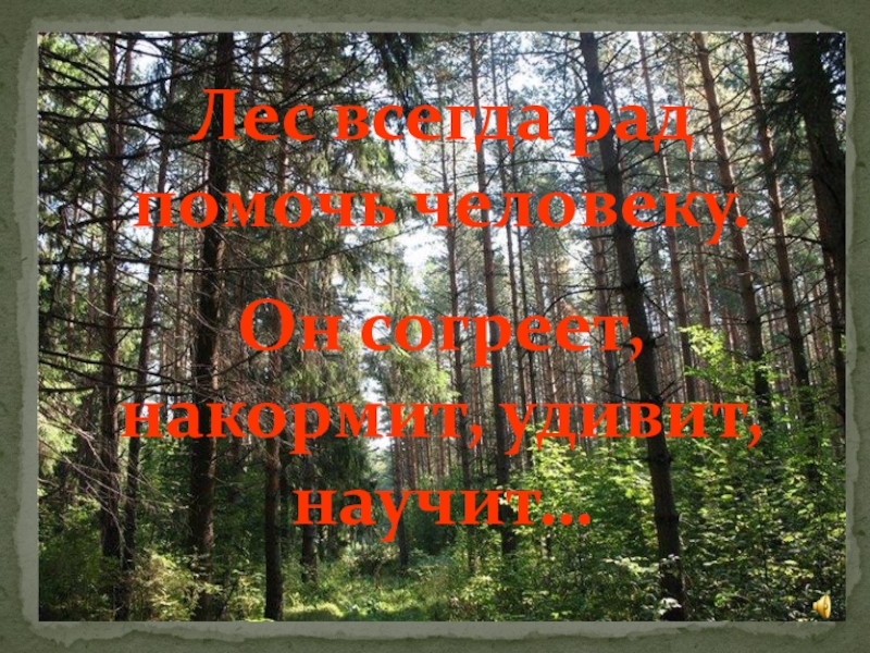 Слайд 71Лес всегда рад помочь человеку.