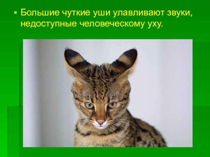 Слайд 19Большие чуткие уши улавливают звуки, недоступные человеческому уху.
