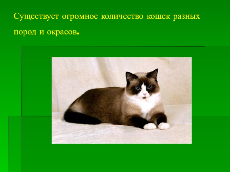 Слайд 9Существует огромное количество кошек разных пород и окрасов.