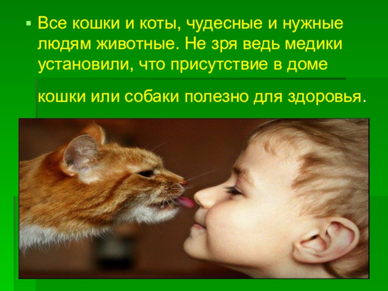 Слайд 25Все кошки и коты, чудесные и нужные людям животные. Не зря