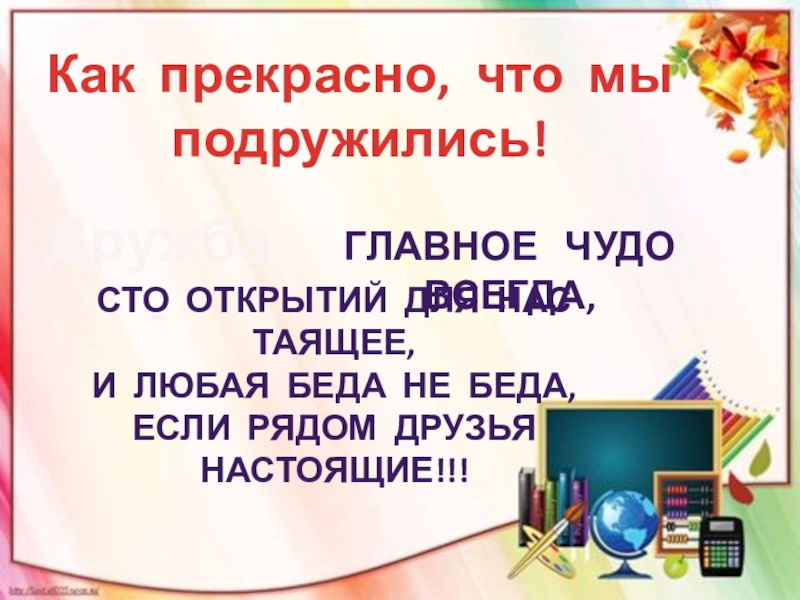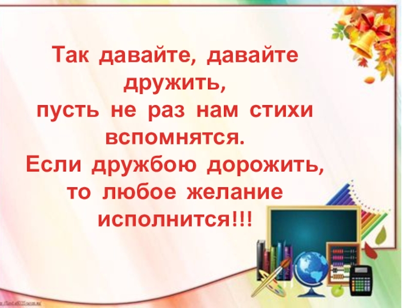 Это сайт презентаций, где можно хранить и обмениваться своими презентациями, докладами, проектами, шаблонами в формате PowerPoint с другими пользователями. Мы помогаем школьникам, студентам, учителям, преподавателям хранить и обмениваться учебными материалами.