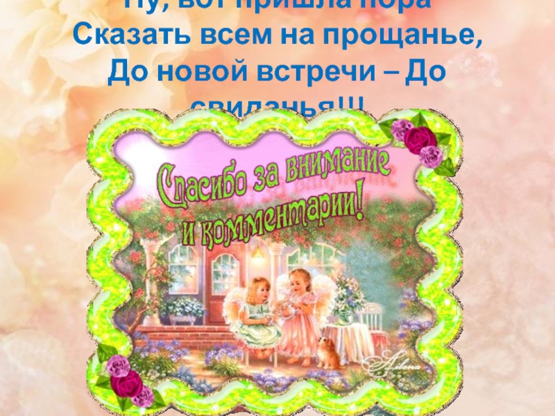 Ну, вот пришла пора Сказать всем на прощанье, До новой встречи – До свиданья!!!