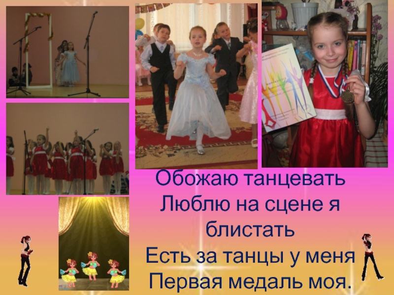 Обожаю танцевать Люблю на сцене я блистать Есть за танцы у меня Первая медаль моя.