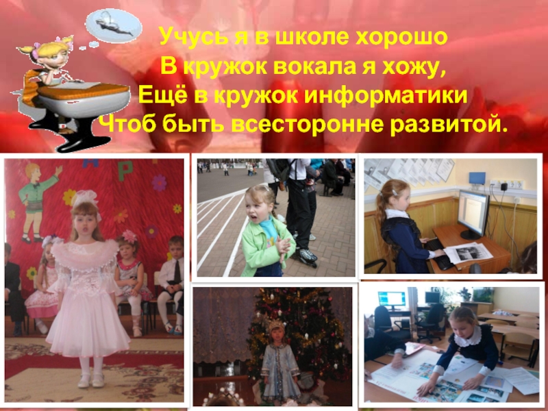 Учусь я в школе хорошо В кружок вокала я хожу, Ещё в кружок информатики Чтоб быть всесторонне
