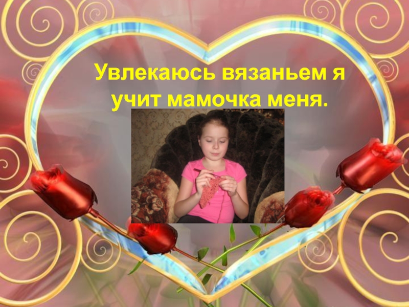 Слайд 12Увлекаюсь вязаньем я учит мамочка меня.