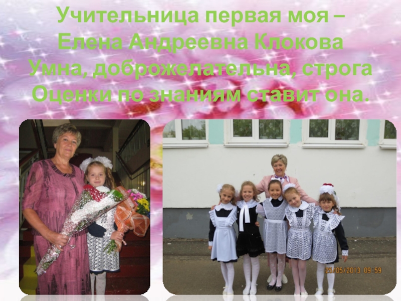 Учительница первая моя – Елена Андреевна Клокова Умна, доброжелательна, строга Оценки по знаниям ставит она.