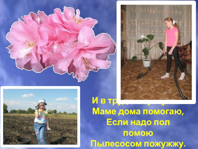 И в труде не уступаю Маме дома помогаю, Если надо пол помою Пылесосом пожужжу.