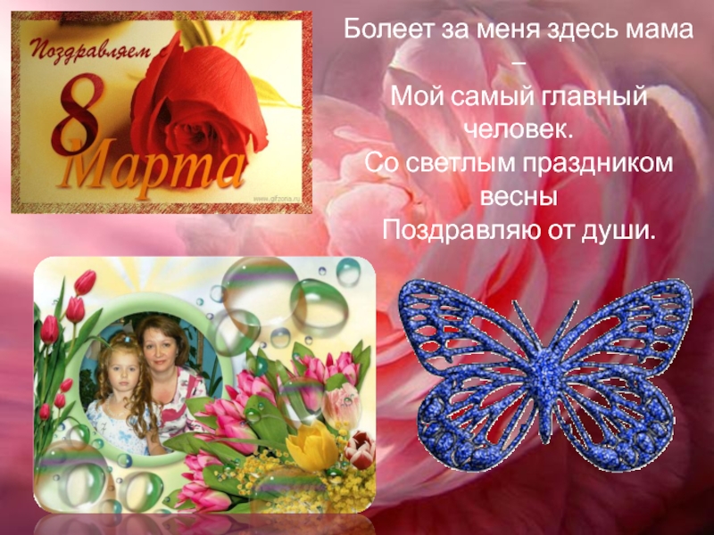 Болеет за меня здесь мама – Мой самый главный человек. Со светлым праздником весны Поздравляю от души.