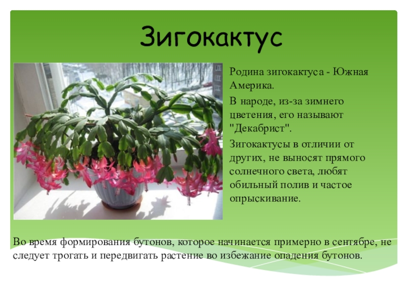 Во время формирования бутонов, которое начинается примерно в сентябре, не следует трогать и передвигать растение во избежание опадения бутонов.