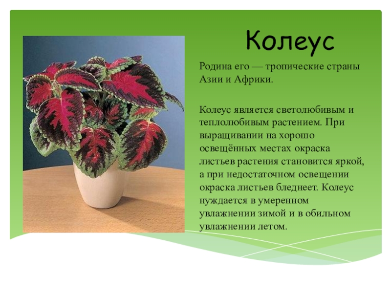 С весны до осени его следует обильно поливать (почва должна быть все время влажной) и умеренно зимой.
