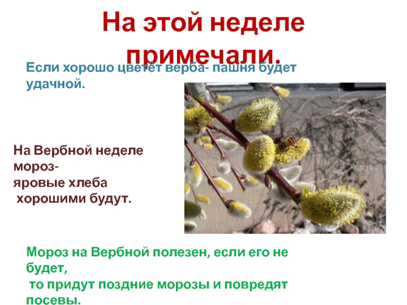 Хозяин бросал веточки вербы в пищу домашней скотине,