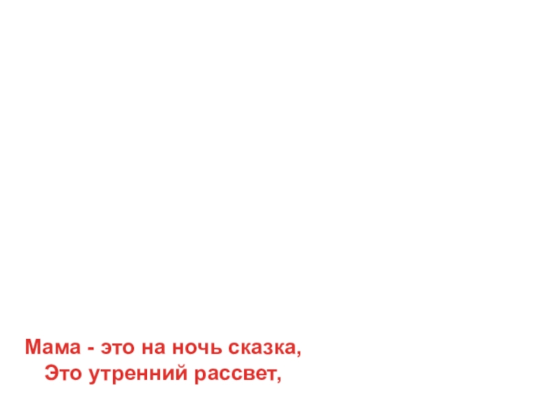 Слайд 21Мама - это на ночь сказка, Это утренний рассвет,
