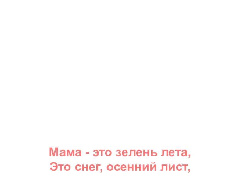 Слайд 23Мама - это зелень лета, Это снег, осенний лист,