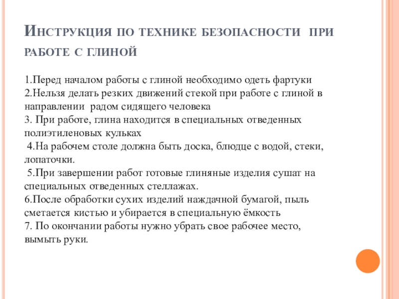 Слайд 9Инструкция по технике безопасности при работе с глиной