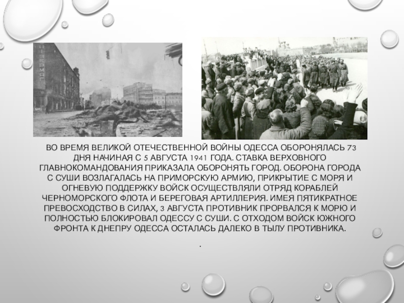 Слайд 2 Во время Великой Отечественной войны Одесса оборонялась 73 дня начиная