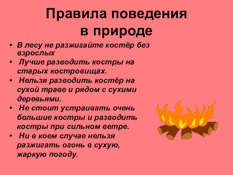 Ни в коем случае нельзя разжигать огонь в сухую, жаркую погоду.