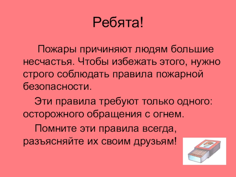 Повзрослев, тогда уж смело Спички в руки мы возьмём,