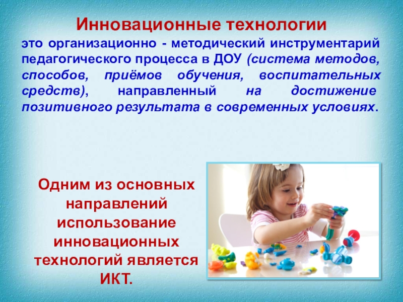 Следовательно, использование в образовательном процессе ДОУ инноваций - это не модная тенденция, а требование времени!