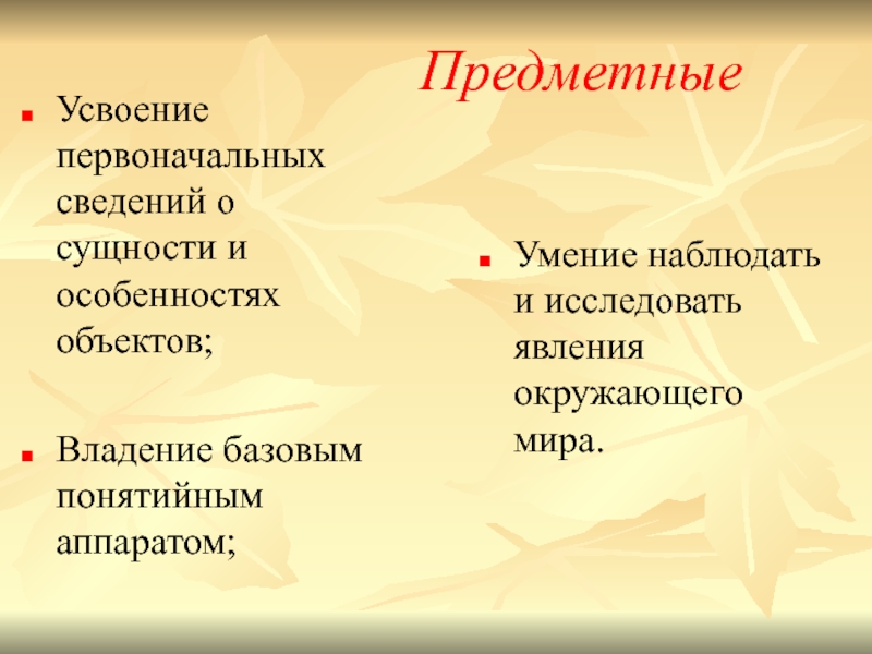 Усвоение первоначальных сведений о сущности и особенностях объектов;