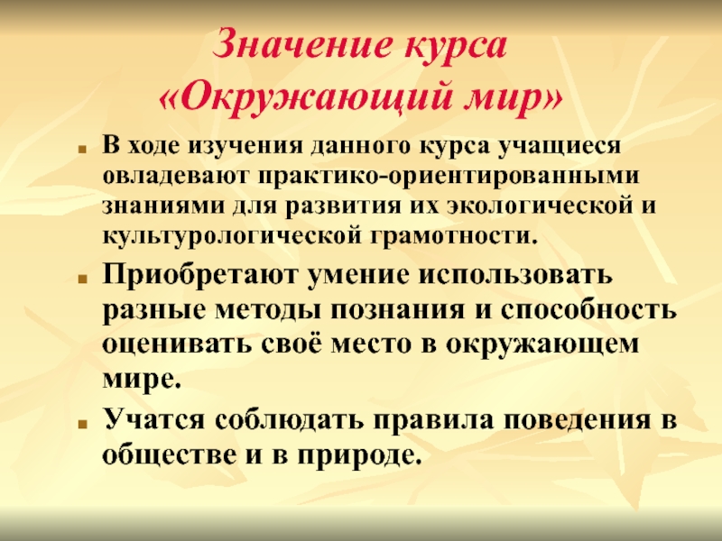 В ходе изучения данного курса учащиеся овладевают практико-ориентированными знаниями