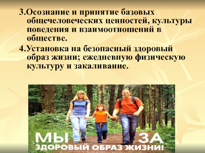 Слайд 213.Осознание и принятие базовых общечеловеческих ценностей, культуры поведения и взаимоотношений в