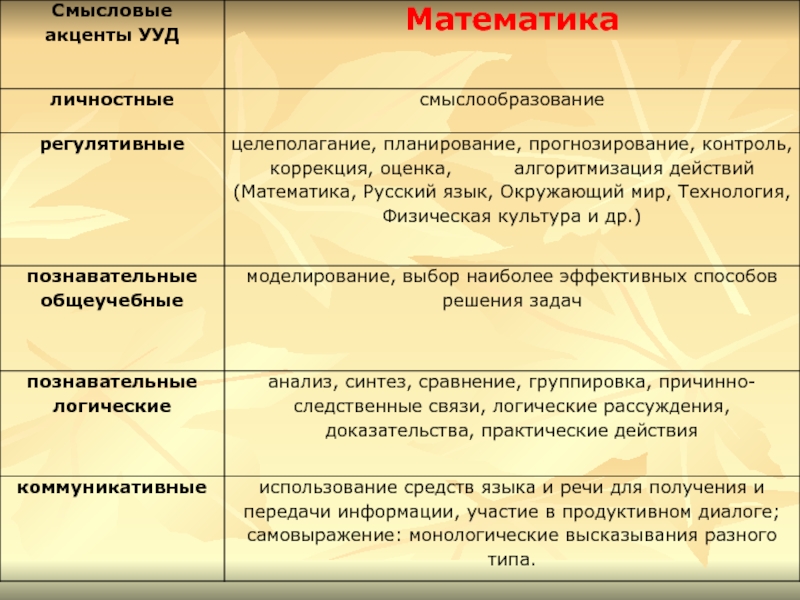 Личностные (материал вызывает интерес к изучению математики, усиливает познавательную активность,
