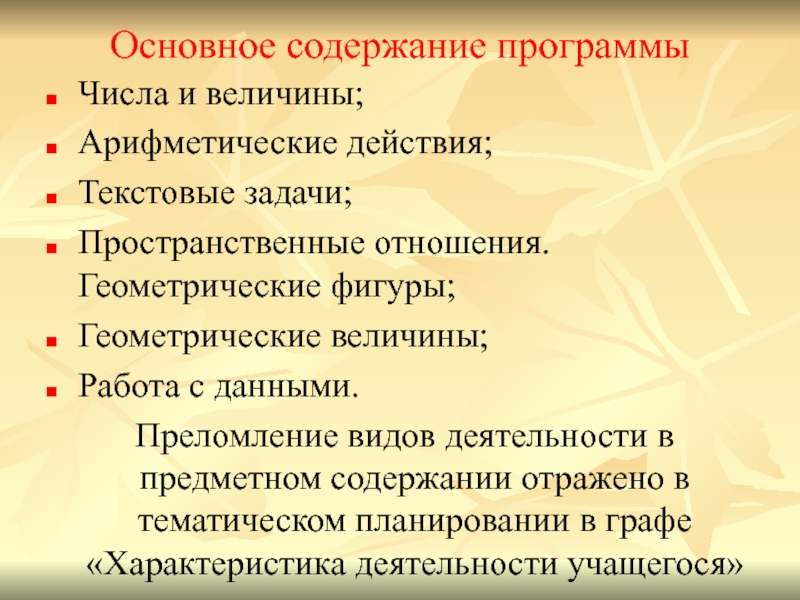 Преломление видов деятельности в предметном содержании отражено в тематическом планировании в графе «Характеристика деятельности учащегося»