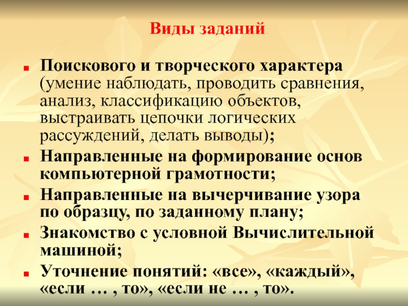 Поискового и творческого характера (умение наблюдать, проводить сравнения, анализ, классификацию
