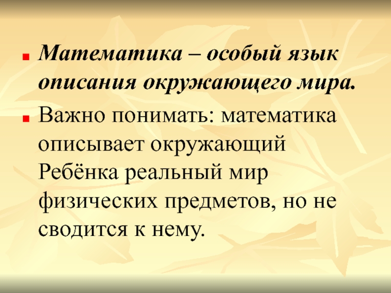 Ребёнка реальный мир физических предметов, но не сводится к нему.